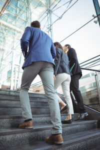 Business executives walking on stairs outside platform